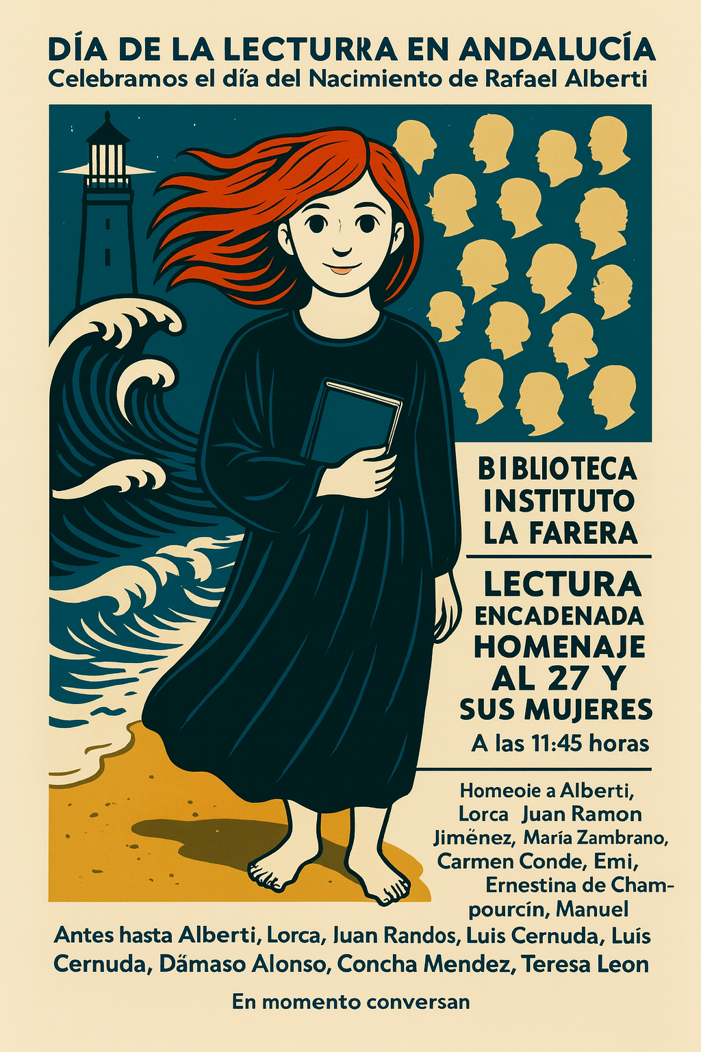 Este 16 de diciembre, hemos celebrado en el IES Salmedina el Día de la Lectura en Andalucía, una fecha muy especial instituida por la Junta de Andalucía para rendir homenaje a nuestra tradición literaria. Coincide con el nacimiento de Rafael Alberti, uno de los grandes poetas de nuestra tierra, y con el aniversario del histórico homenaje a Luis de Góngora celebrado en el Ateneo de Sevilla, acto fundacional del Grupo del 27.