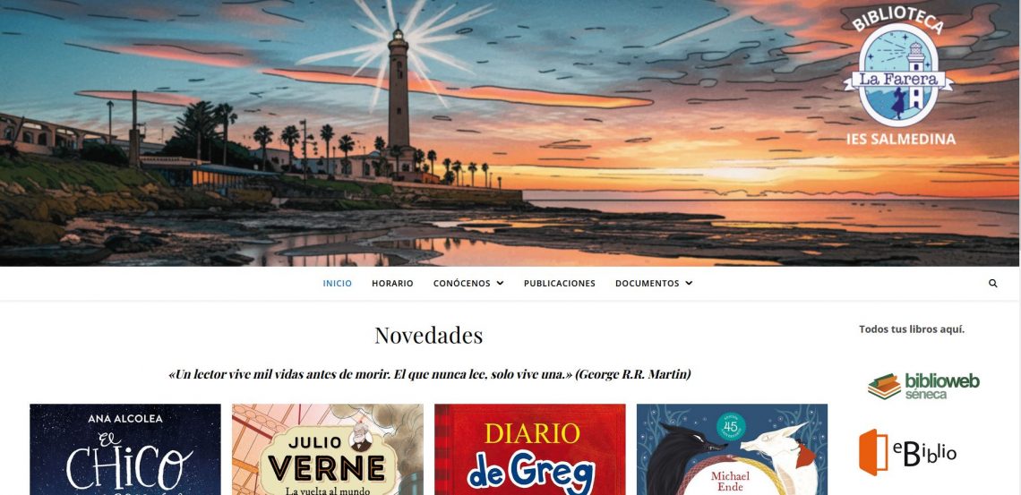 En la web, diseñada por nuestro compañero Paco Moscoso, encontrarás de forma sencilla todas las novedades, el acceso directo a nuestro catálogo, los últimos títulos incorporados, los pódcast de Onda Salmadina y las actividades que iremos programando para este curso 2025-2026.